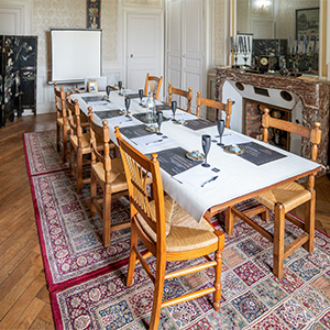 Selon le volume de votre équipe professionnelle, vous choisissez l’espace qui vous convient parmi les salons historique Second Empire du Château ou dans la salle de réception L’Orangeraie, idéale pour les conférence.